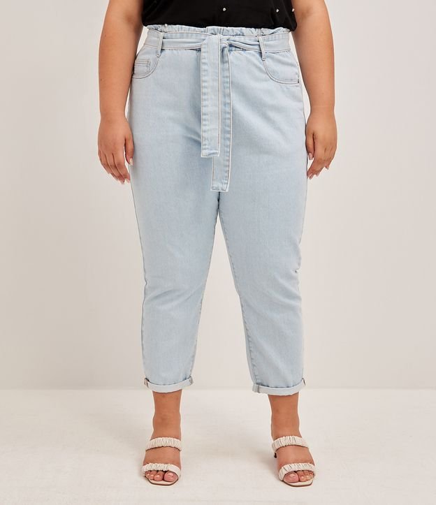 Calça Clochard Jeans Lisa com Cinto Faixa Curve & Plus Size