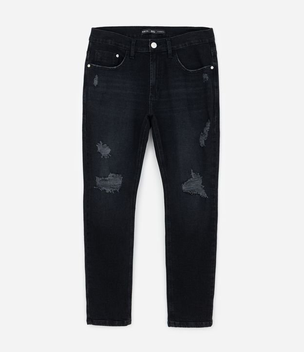 Calça Jeans Skinny Cropped com Rasgos Preto