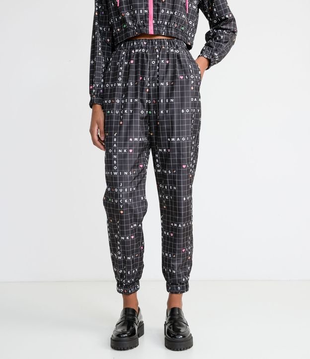 Calça Jogger com Estampa de Palavras Cruzadas e Cós Elástico