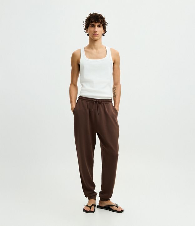Calça de pijama jogger em modal, com toque macio e caimento confortável para relaxar no dia a dia. Possui cós elástico com ajuste por cordão e punhos na barra, garantindo praticidade e leveza. Ideal para momentos de descanso.