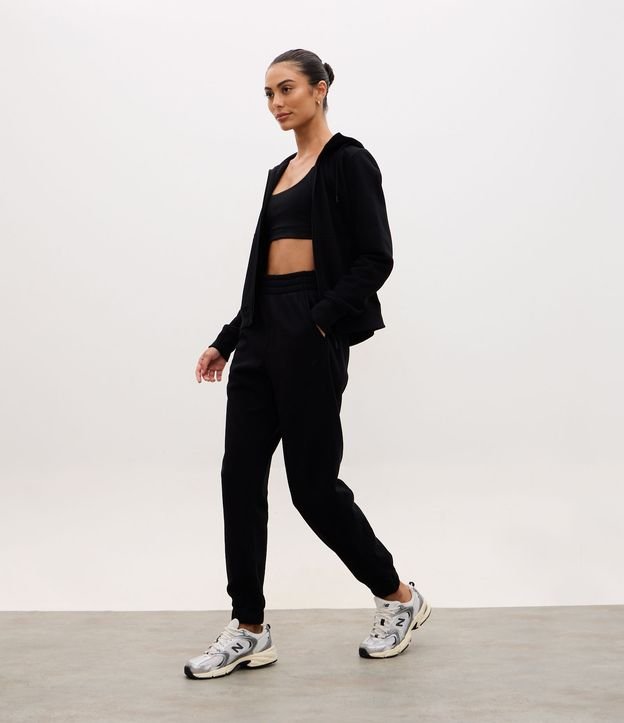 Calça Jogger Esportiva em Moletom com Recortes Canelados Preto