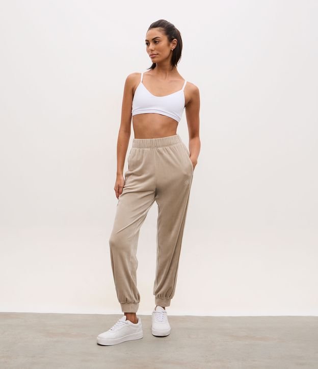 Calça Jogger Esportiva em Plush com Cós Elástico Bege