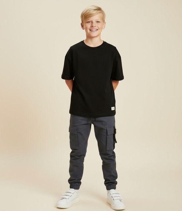 Calça Jogger Infantil com Bolso Cargo - Tam 5 a 14 Anos