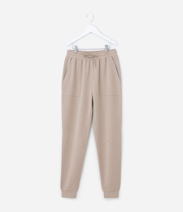 Calça Jogger Infantil em Modal com Recortes - Tam 5 a 14 Anos Bege