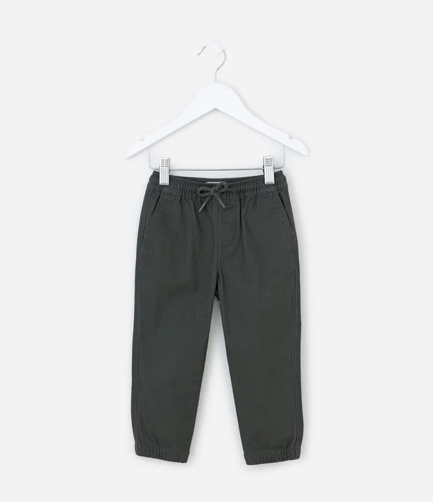 Calça Jogger Infantil em Sarja com Amarração - Tam 5 a 14 Anos Verde