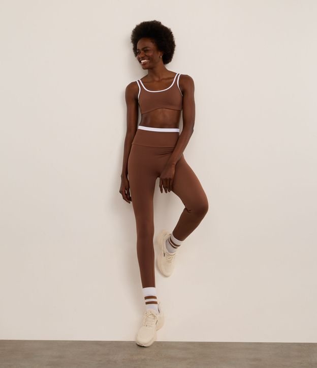 Calça Legging Contraste Maxxi com Recorte Marrom