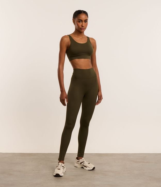 Calça Legging Esportiva Canelada em Ribana Seamless Verde Oliva