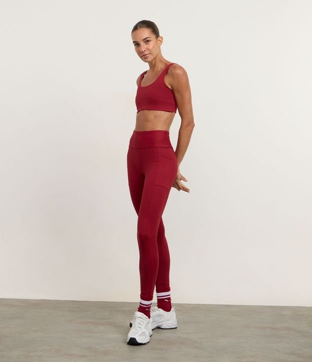 Calça Legging Esportiva com Bolsos Laterais Vermelho Escuro