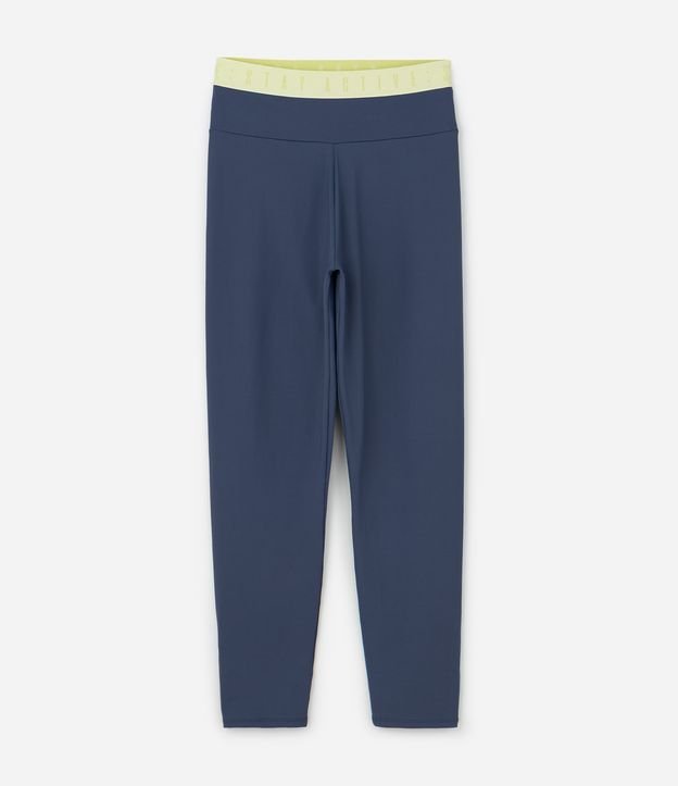 Calça Legging Esportiva com Faixa Lateral Contrastante Azul