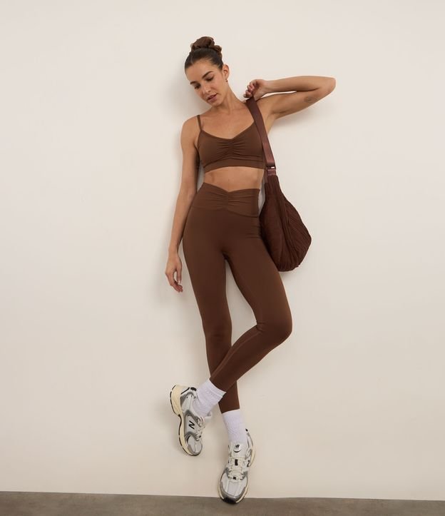 Calça Legging Esportiva em Microfibra com Cós Franzido Marrom