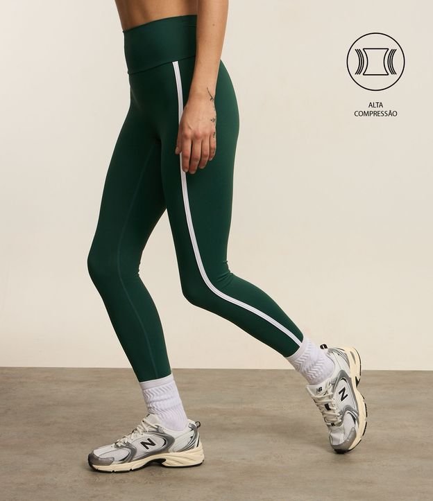 Calça Legging Esportiva em Microfibra com Viés Lateral Verde