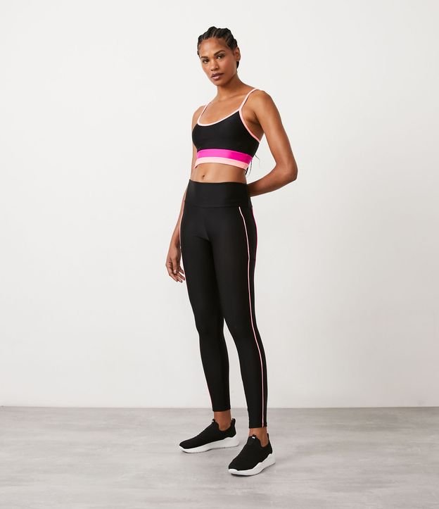 Calça Legging Esportiva em Poliamida com Detalhe Contrastante