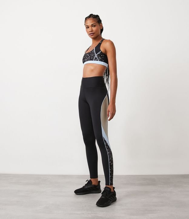 Calça Legging Esportiva em Poliamida com Recortes Estampados