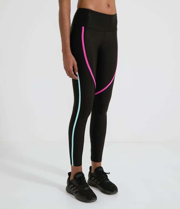 Calça Legging Esportiva em Poliamida com Viés Contrastante