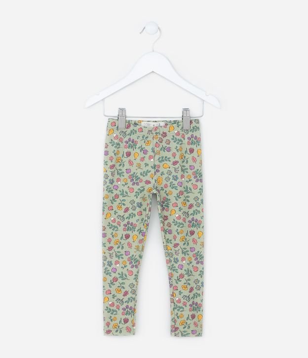 Calça Legging Infantil Canelada com Estampa Florzinhas - Tam 1 a 6 Anos Multicores
