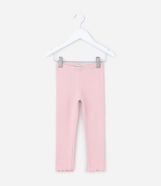 Calça Legging Infantil Canelada com Frufru na Barra - Tam 1 a 6 Anos Rosa
