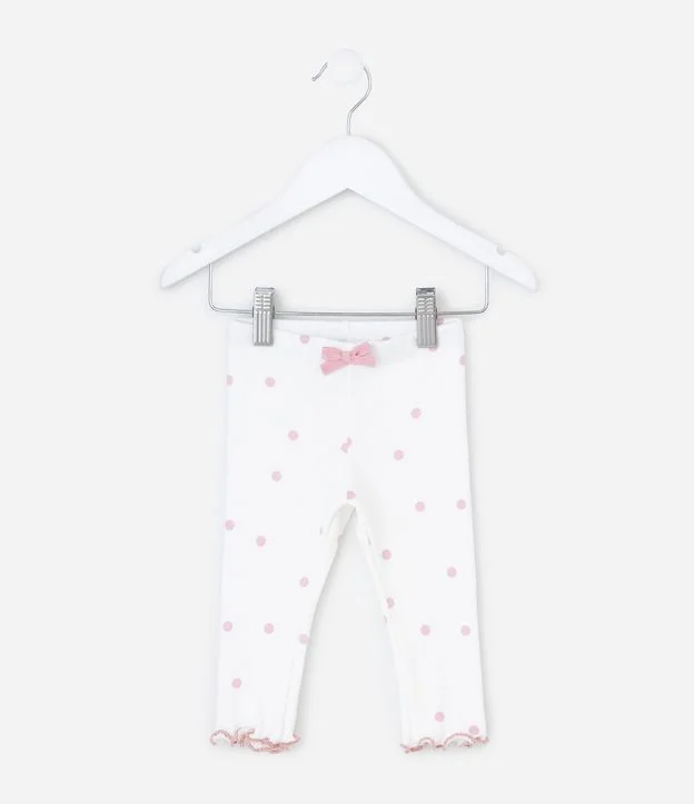 • Calça Legging Infantil em Ribana com Estampa Poá e Lacinho – Tam RN a 18 Meses Branco 1