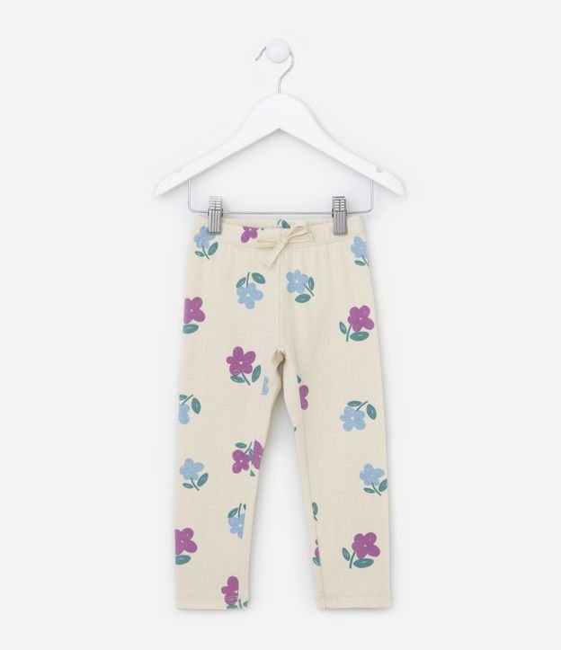Calça Legging Infantil em Ribana Floral - Tam 1 a 5 Anos Bege