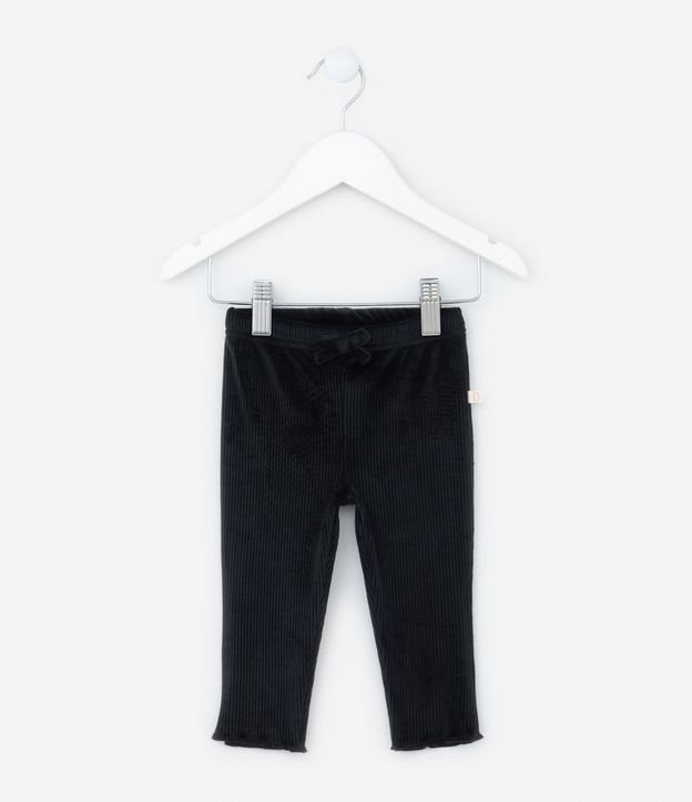 Calça Legging Infantil em Veludo com Lacinho - Tam 0 a 18 meses Preto