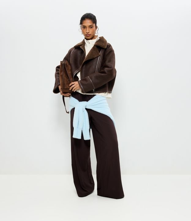 Calça Leve em Microfibra com Listra Lateral Marrom