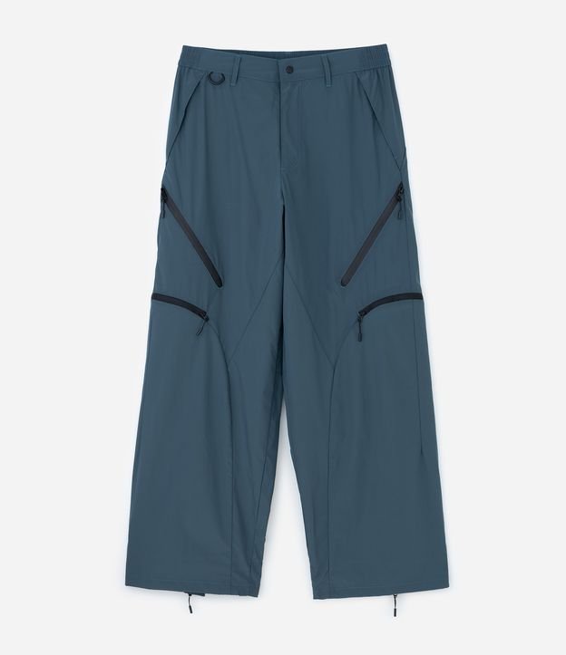 Calça Lisa com 6 bolsos e Detalhe na Perna Azul