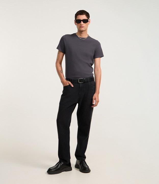 Calça jeans masculina modelo reto loose, confeccionada a partir de algodão com certificação BCI.
