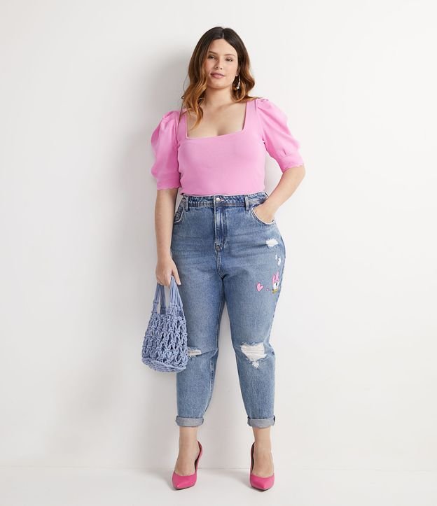 Calça Mom Jeans com Estampa Margarida Curve & Plus Size