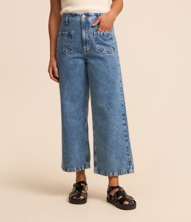 Calça Pantacourt em Jeans Destroyer com Bolsos Diferenciados