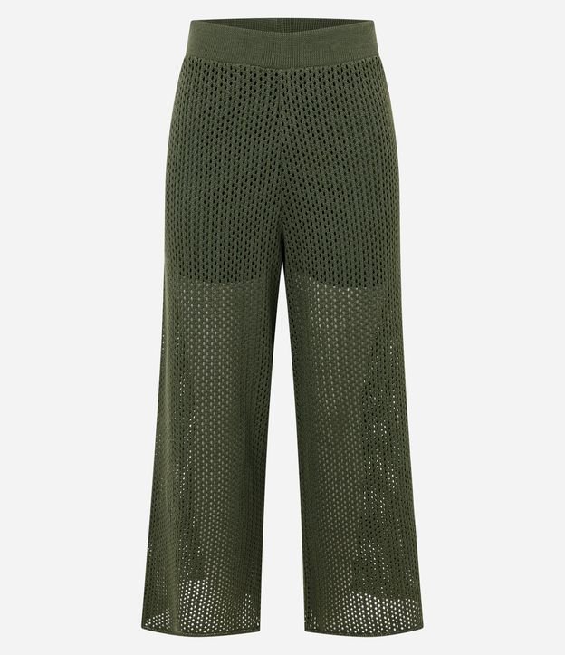 Calça Pantacourt em Tricô com Ponto Trabalhado Verde