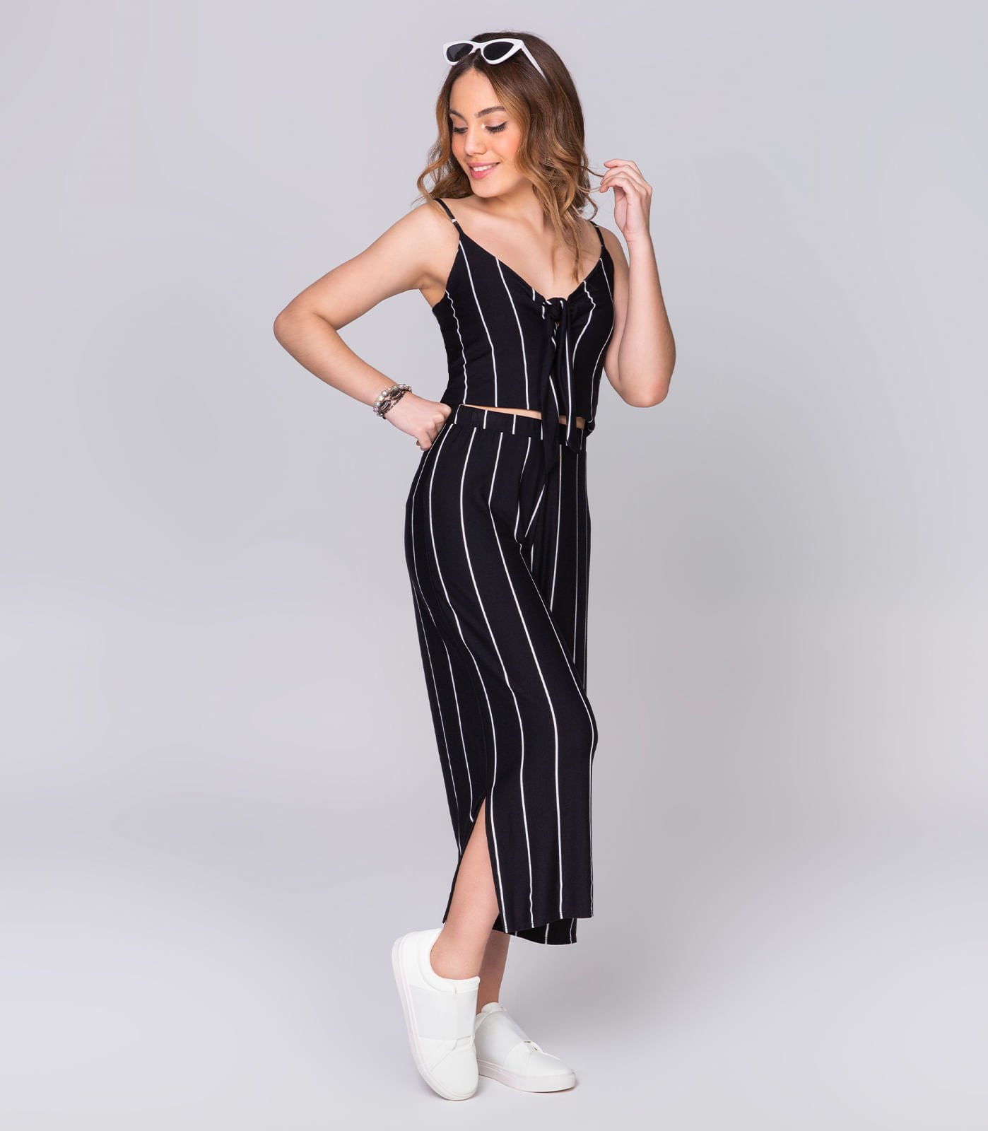 Calça Pantacourt Feminina Listrada Rovitex Teen Preto