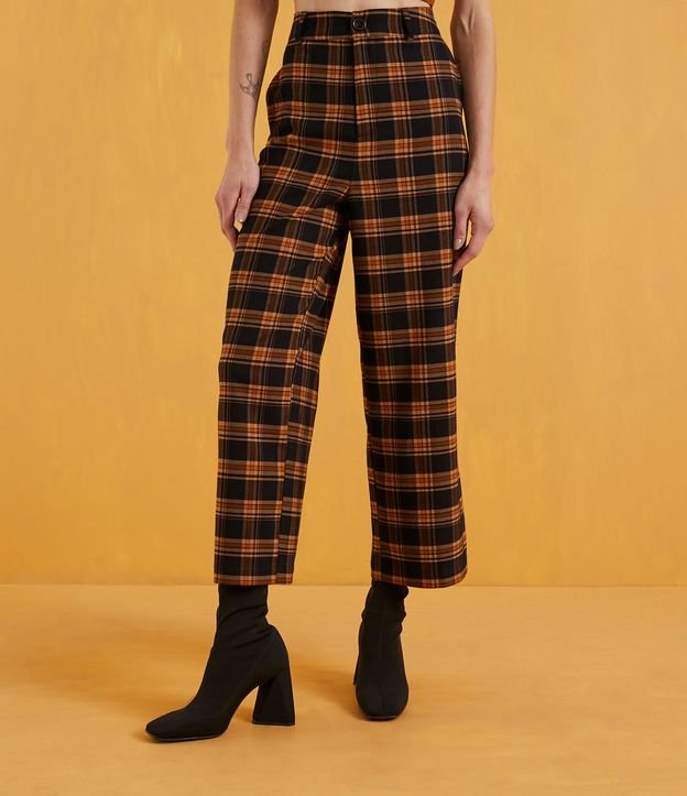 Calça Pantacourt Xadrez com Cintura Alta e Elástico no Cós
