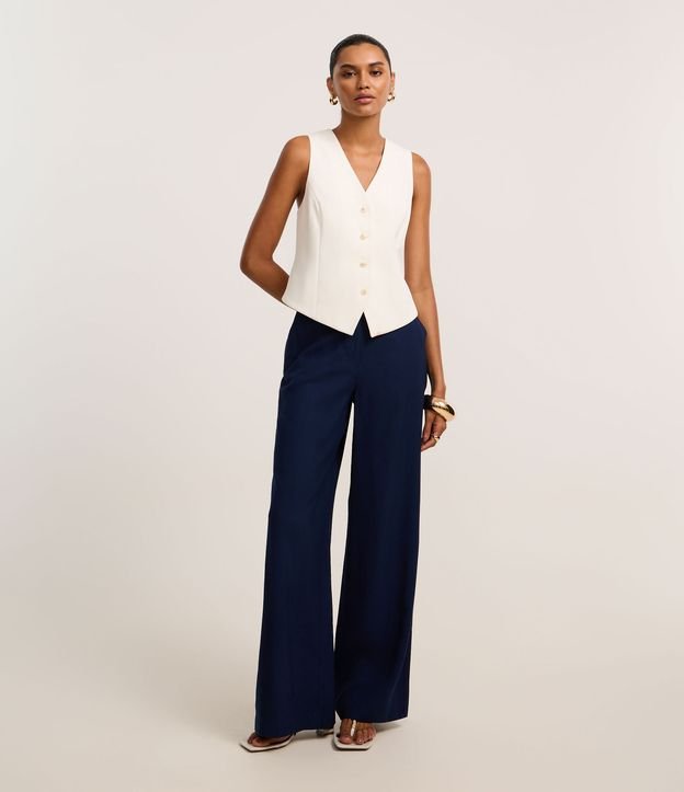 Calça Pantalona Alfaiatada com Cintura Alta Azul Marinho