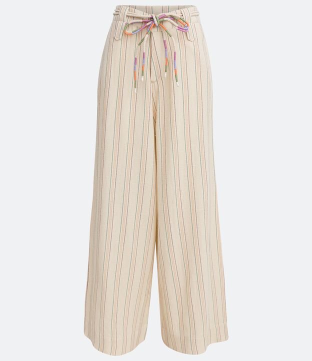 Calça Pantalona Cintura Alta com Cinto Cordão e Listras Verticais