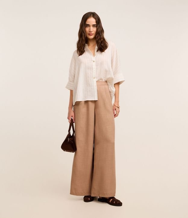 Calça Pantalona Cintura Alta com Pregas e Pences
