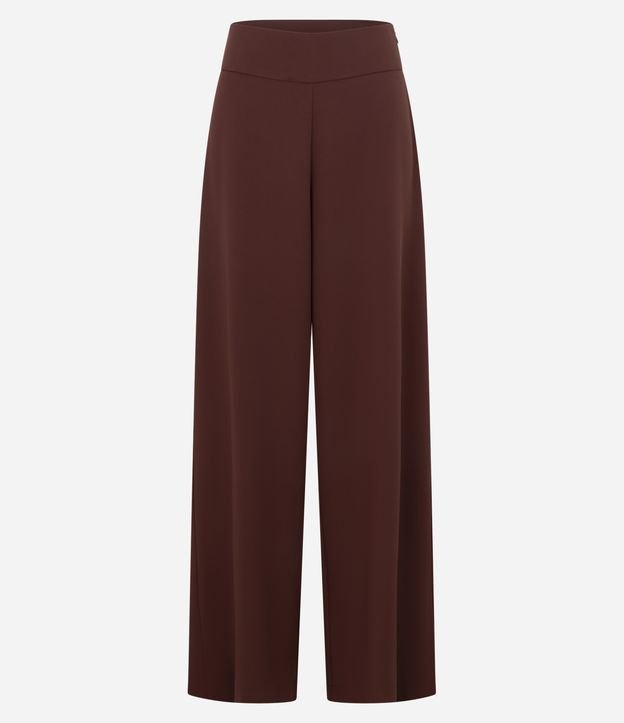 Calça pantalona feminina confeccionada em crepe, com cós largo, zíper lateral e pences na parte de trás.