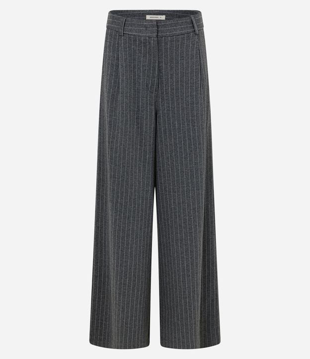 Calça Pantalona em Modal com Risca de Giz Cinza