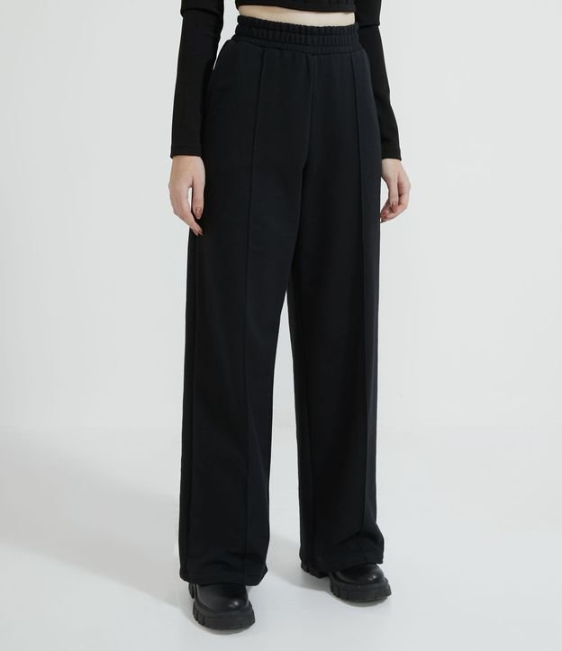 Calça Wide Leg em Moletom Friso Frontal