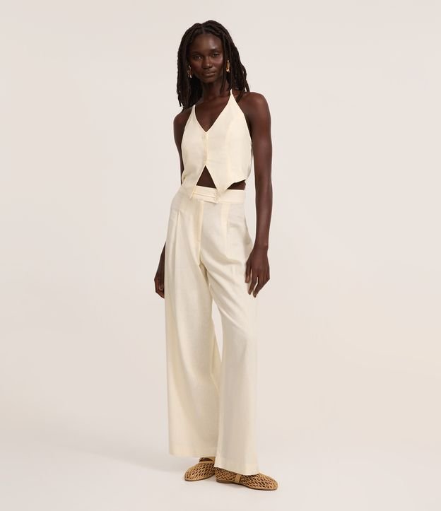 Calça Pantalona em Viscolinho com Cós Transpassado Off White