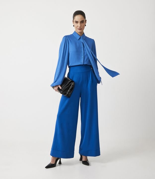 Calça Pantalona em Viscose com Elástico no Cós e Botões