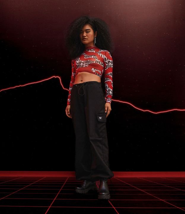 Calça Parachute em Sarja com Ajustador na Barra