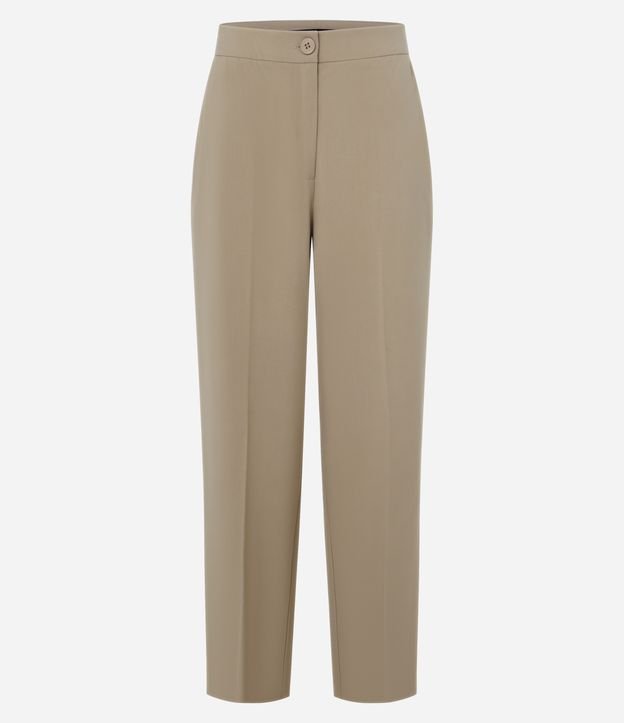 Calça Reta Alfaiatada com Bolsos e Frisos Bege