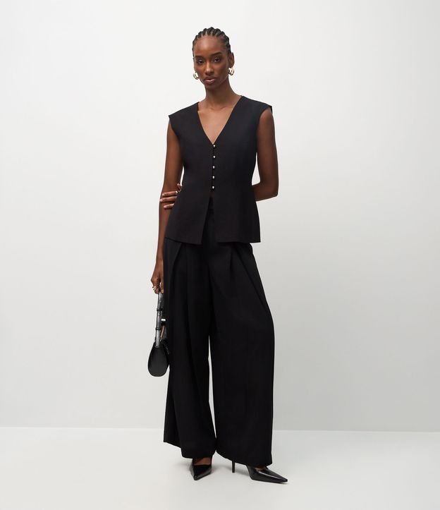 Calça Reta Alfaiatada com Pregas Frontais Preto