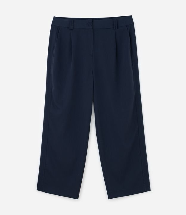 Calça Reta Alfaiatada com Recorte Lateral Curve & Plus Size Azul