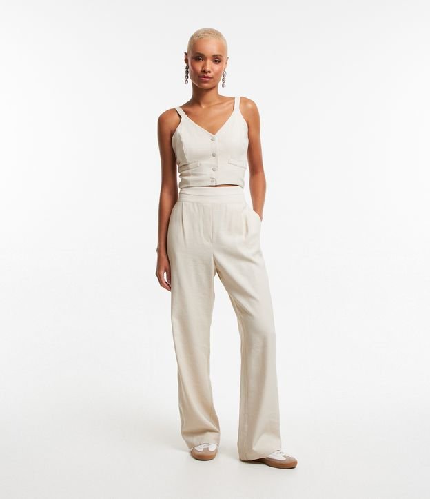 Calça Reta Alfaiataria com Cós Duplo e Elástico na Parte de Trás