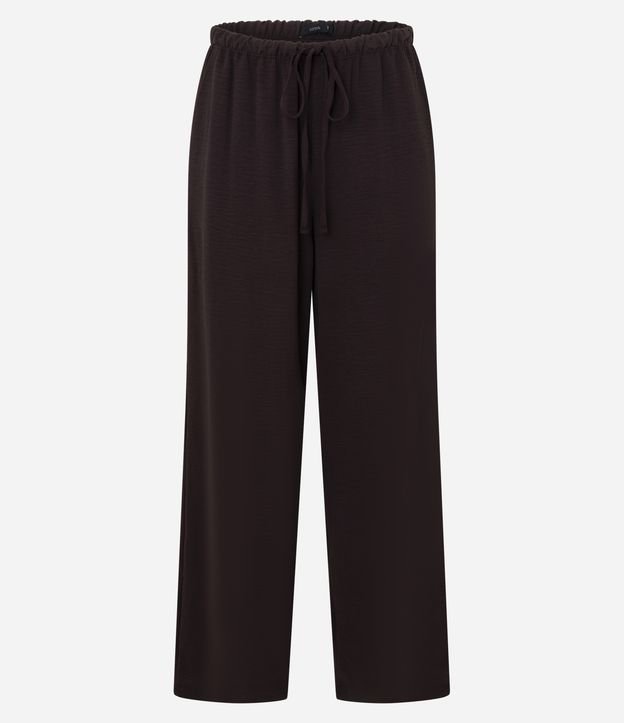 Calça Reta Cintura Alta em Airflow com Amarração no Cós Marrom