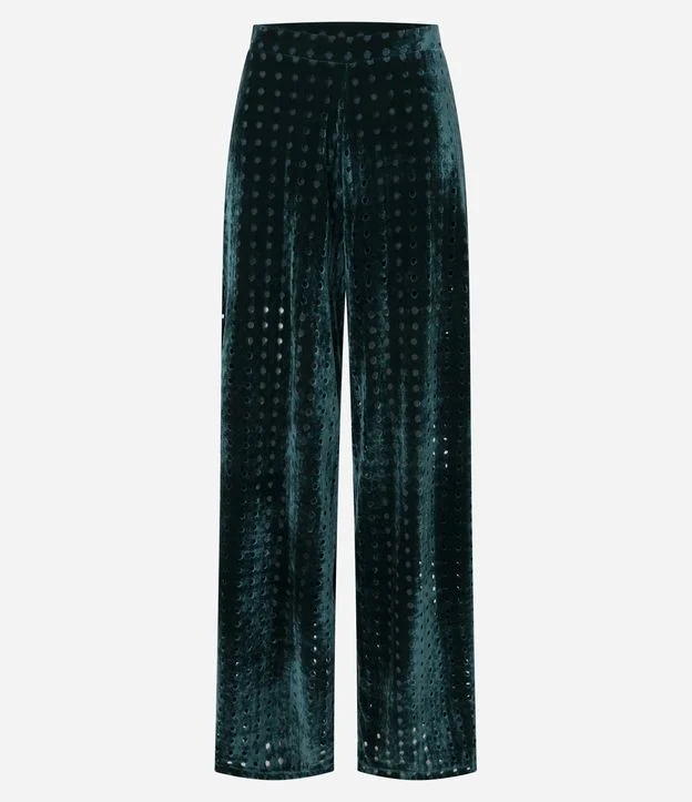 Calça Reta Cintura Baixa em Veludo com Furinhos Verde Escuro