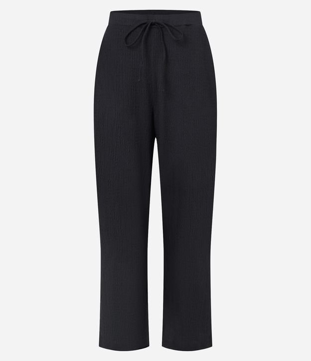 Calça Reta com Textura e Cós Elástico Preto
