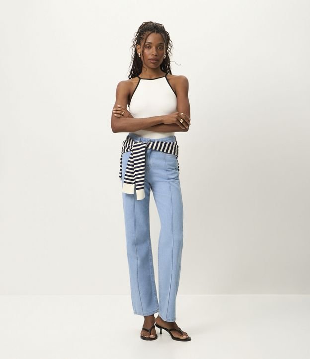 Calça Reta Comfort em Jeans com Costura Aparente Claro