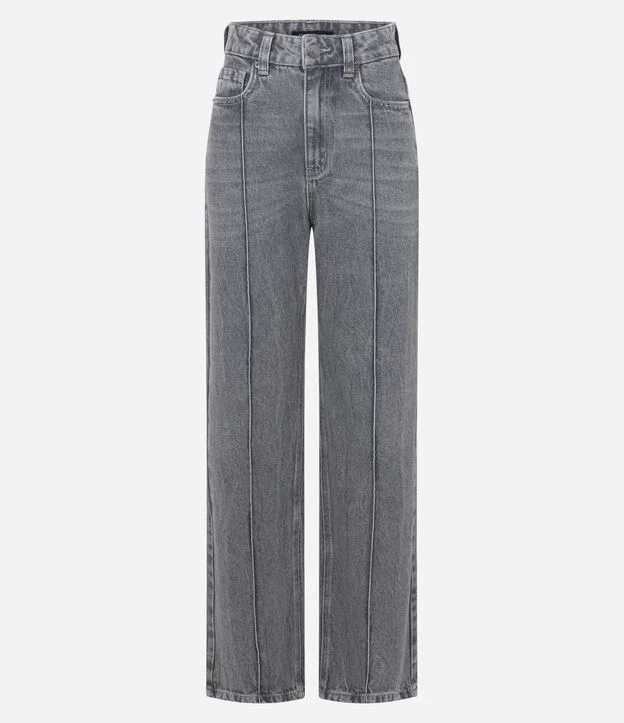 Calça Reta Comfort em Jeans com Friso Frontal Cinza