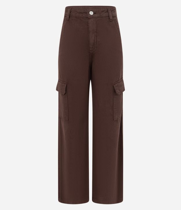 Calça Reta Comfort em Sarja com Bolsos Cargo Marrom